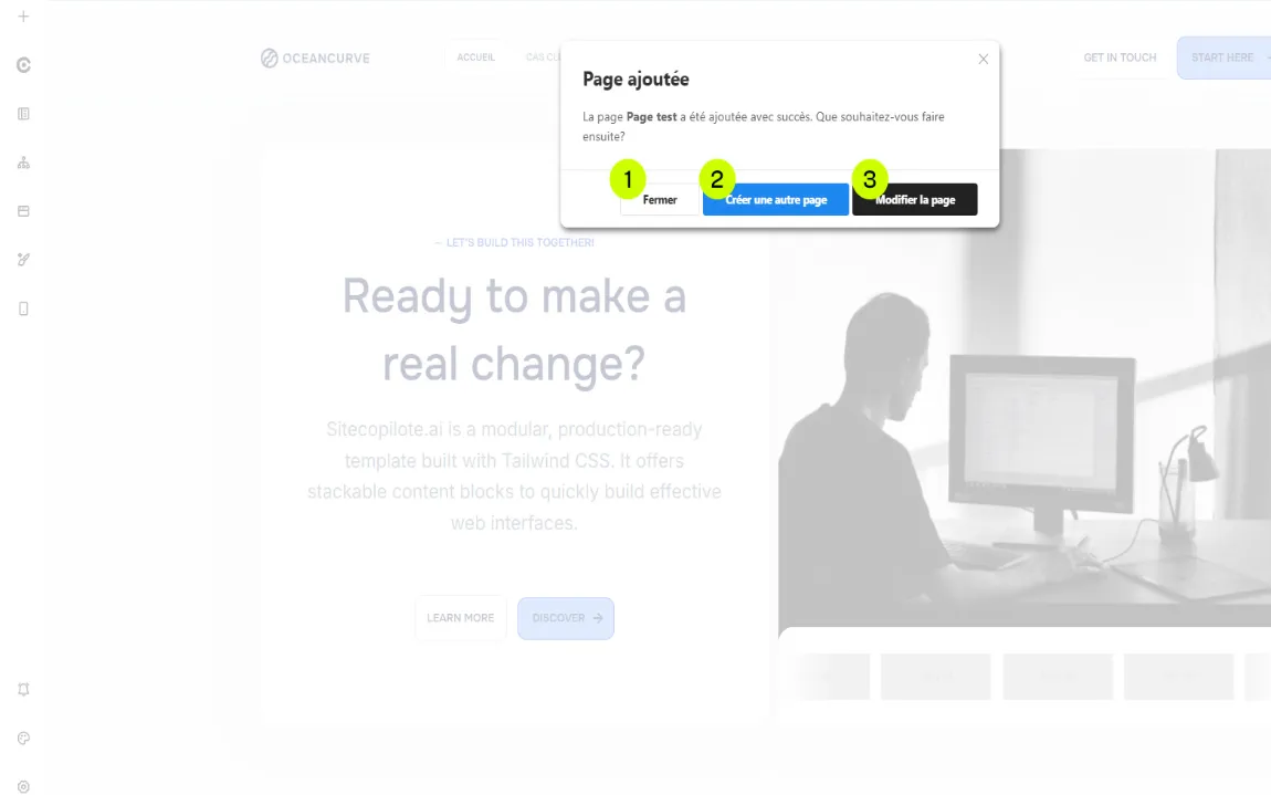 - Modifier la page : accéder à l’édition de la page créée