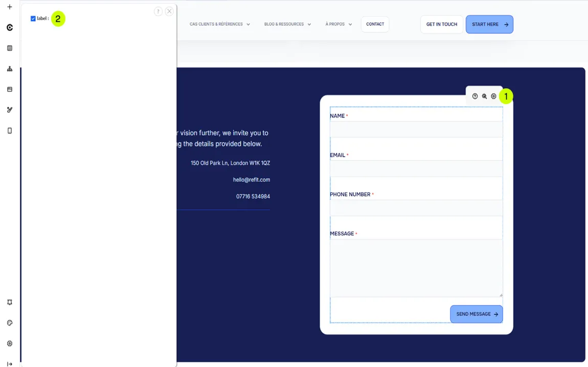 Cocher ou décocher la case : afin d’afficher ou masquer le formulaire. Les changements s’appliquent instantanément et sont visibles directement sur la page, sans fermer le panneau.